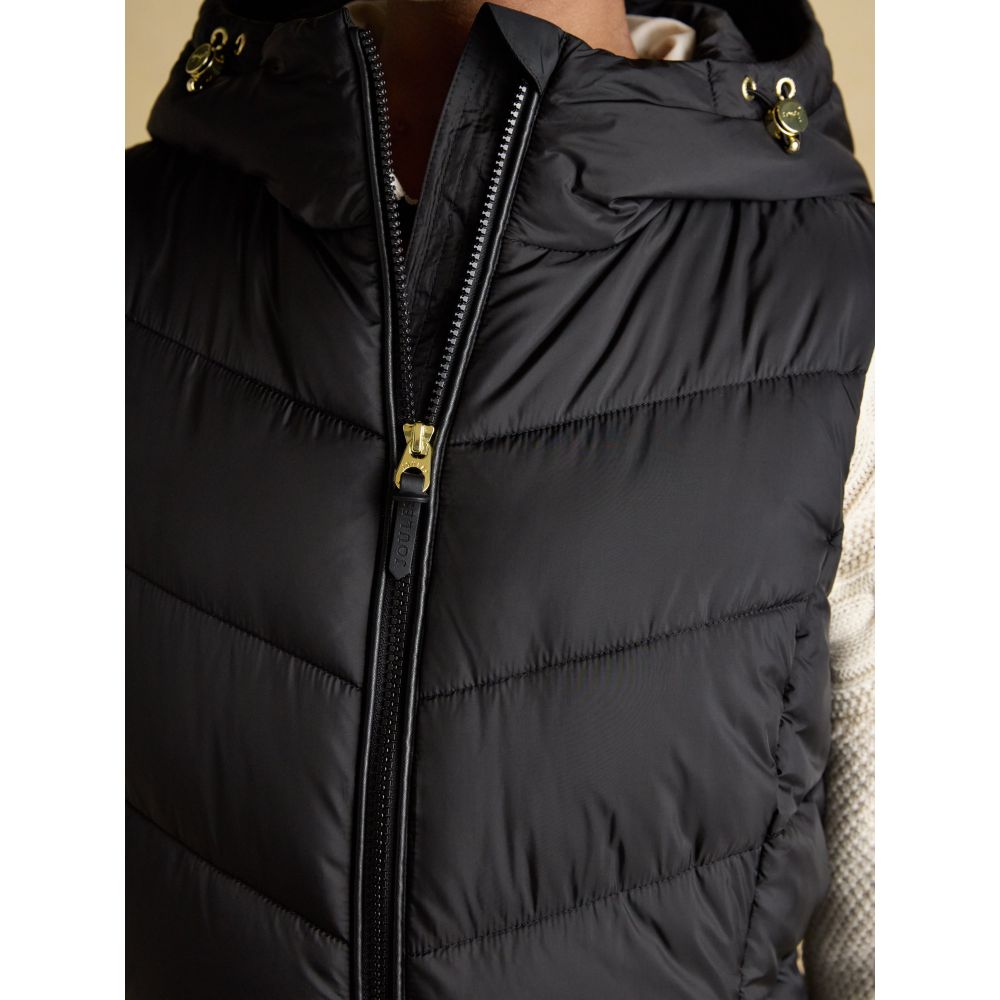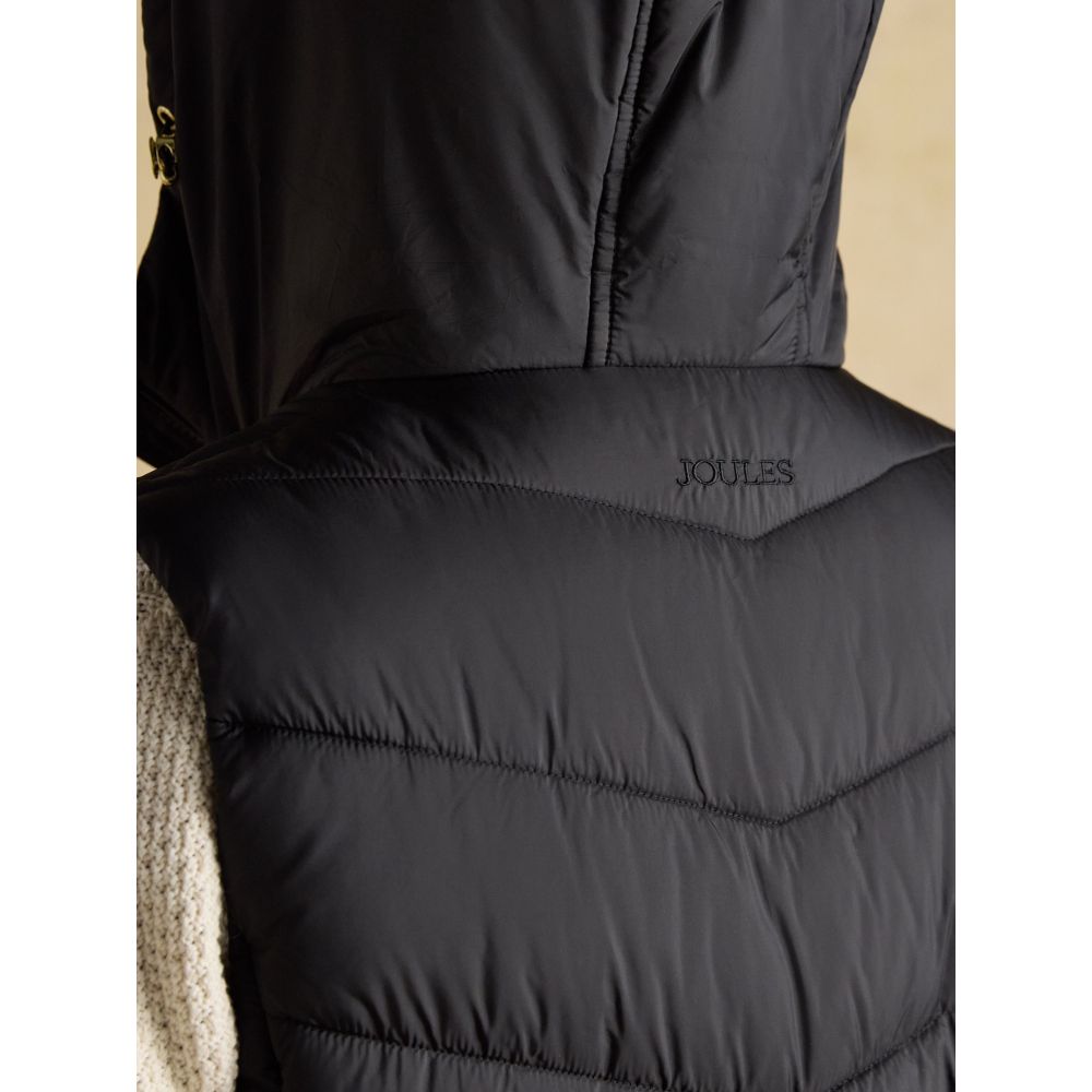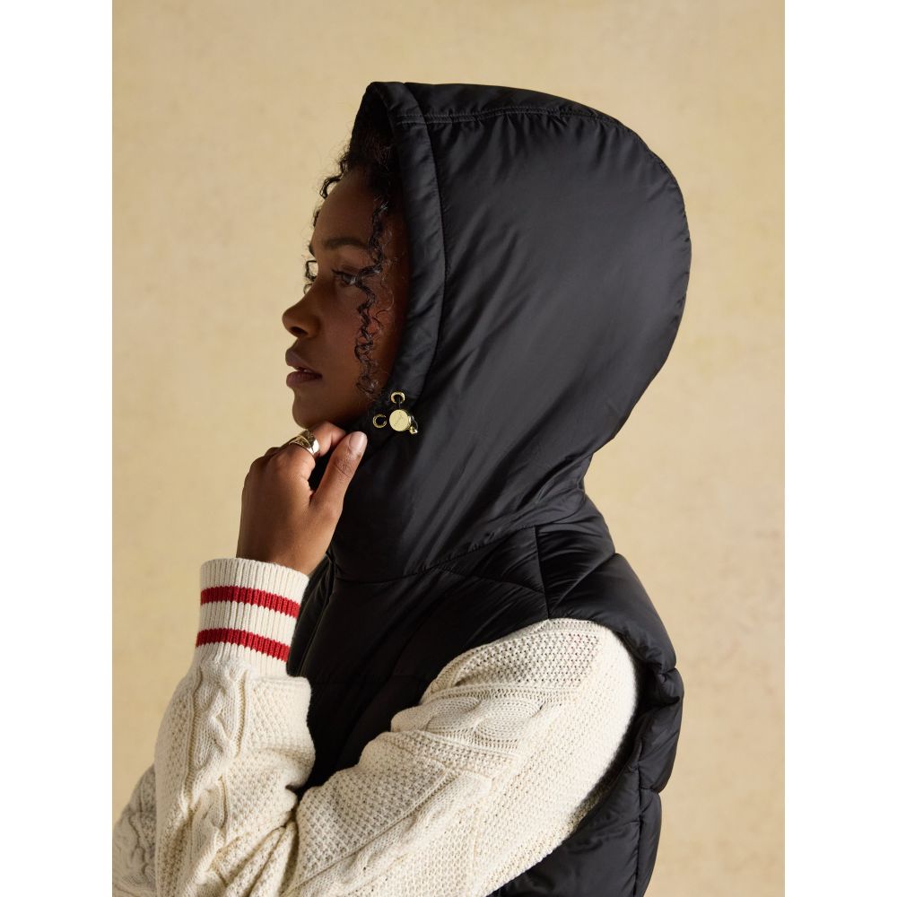 Moorsdale Black Longline Showerproof Padded Gilet with Hood