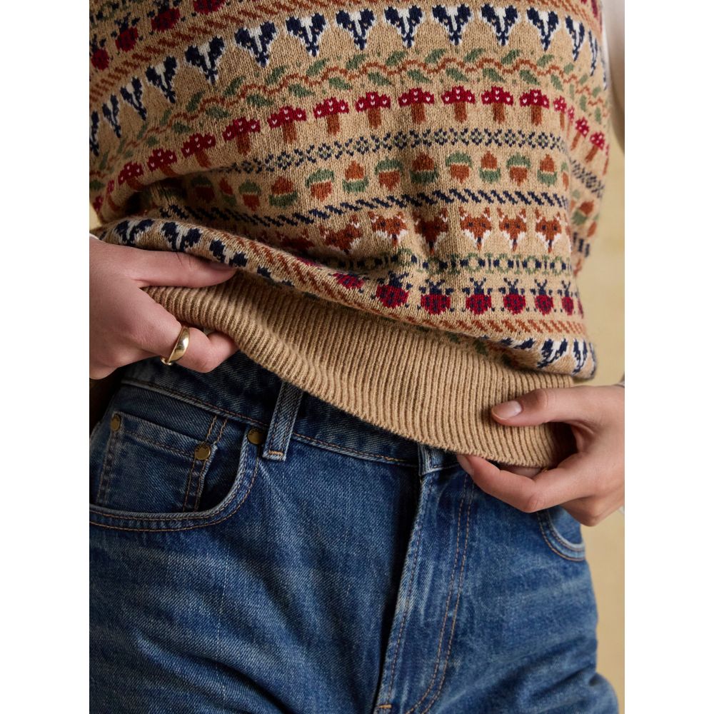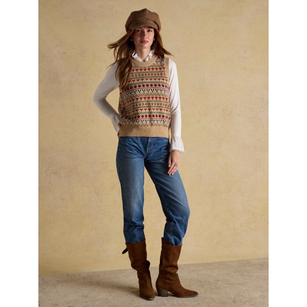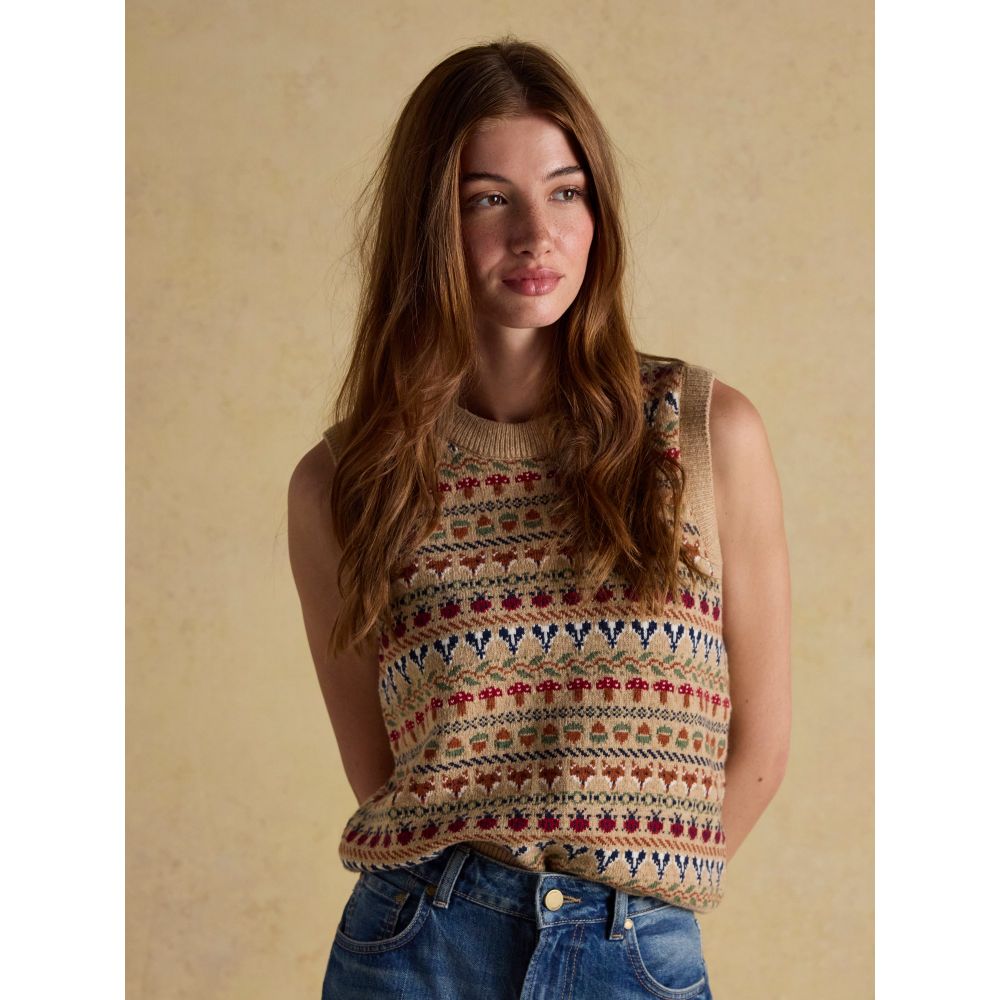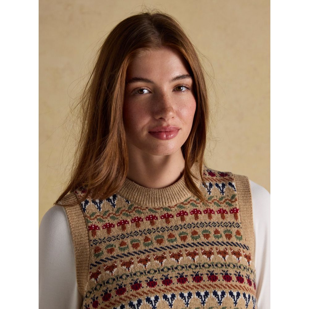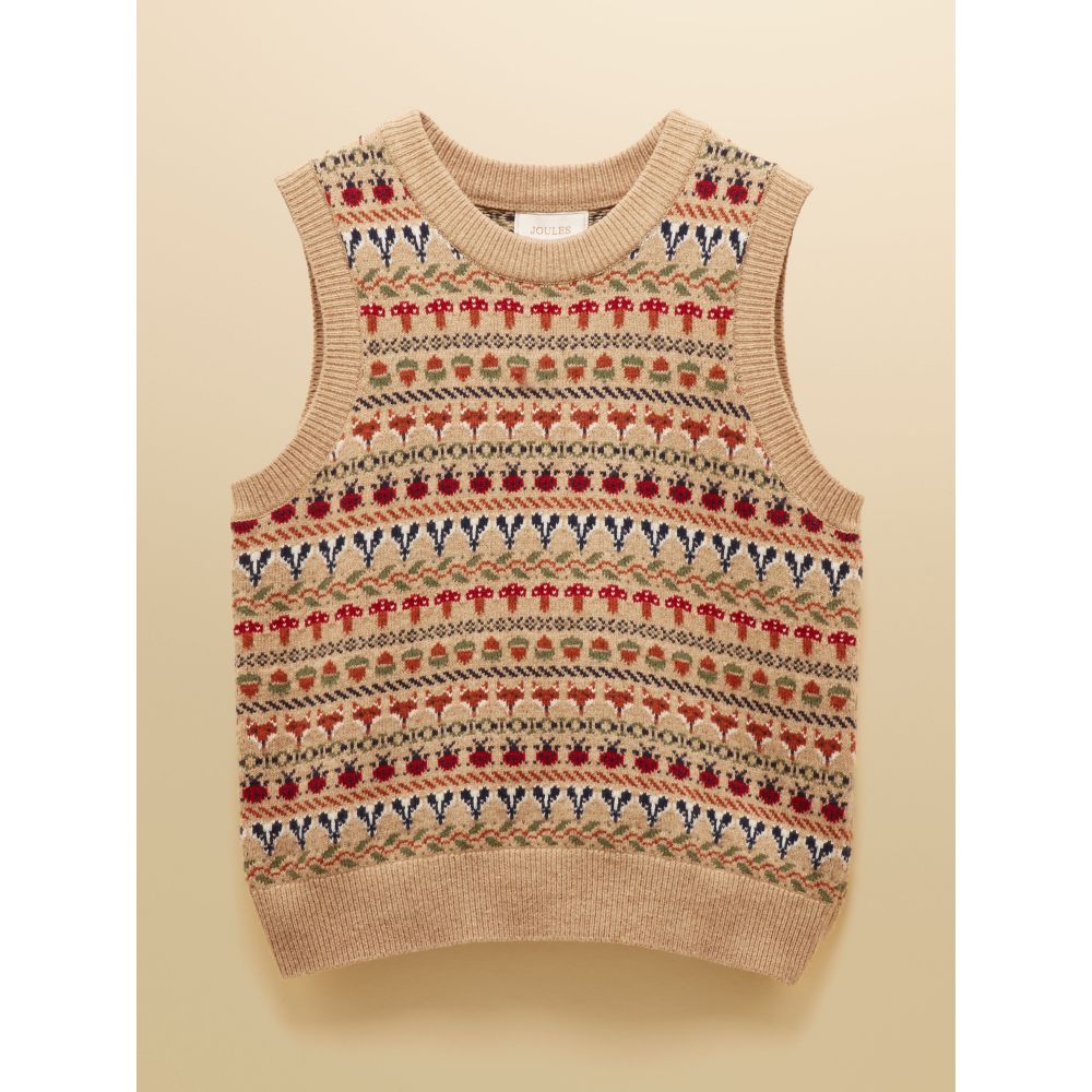 - Woodland Oatmeal Cotton-Rich Intarsia Crew Neck Knitted Vest