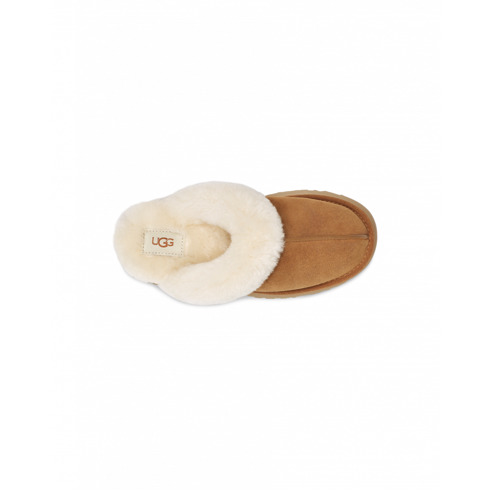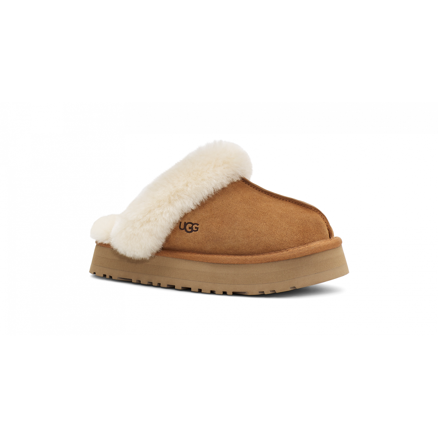 How would you describe yourself? Totally unique? Like to stand out? Want to try both for the first time? Then you are definitely on the right page. The Disquette adds a 1" retro-style platform sole to a familiar slip-on silhouette for outdoor wear, an all-day cushion, and a maximalist look. Crafted from our signature sheepskin and suede, this effortless style adds a playful statement to your life. The outsole of this product is either a sugarcane EVA outsole, which is a responsible compound using sugarcane foam that allows us to reduce dependency on fossil fuels by replacing petroleum-based ethylene, or a Treadlite by UGG™ outsole. This product was made in a factory that supports women in our supply chain with the help of HERproject. This collaborative initiative creates partnerships with brands like ours to empower and educate women in the workplace.