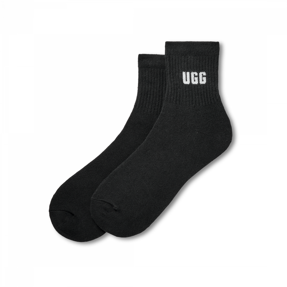 Product ID: 1171623-WBLC-O/SDouble the pairs, double the comfort. Our Quinlin Logo Quarter 2 Pack is an essential set of quarter-length socks crafted with a soft cotton blend from Responsible Cotton and finished with The Graphic UGG® Font.